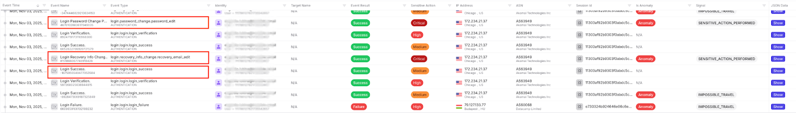 - Exaforce surfaces impersonation attempts, where an attacker tries to mimic normal provisioning activity to conceal malicious changes.
