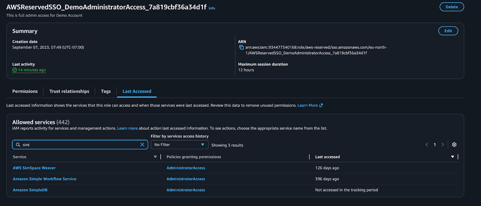 AWS IAM role granting admin access