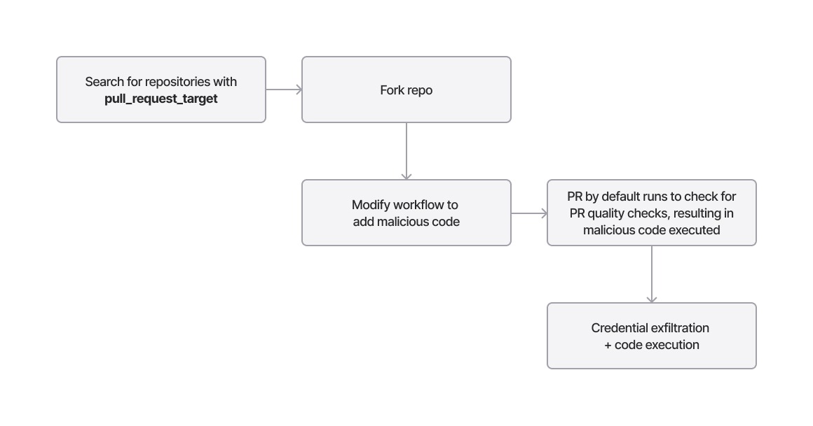 - Pwn Request - abusing a GitHub Actions vulnerability that allows workflows to run with elevated privileges regardless of the contributor’s source.