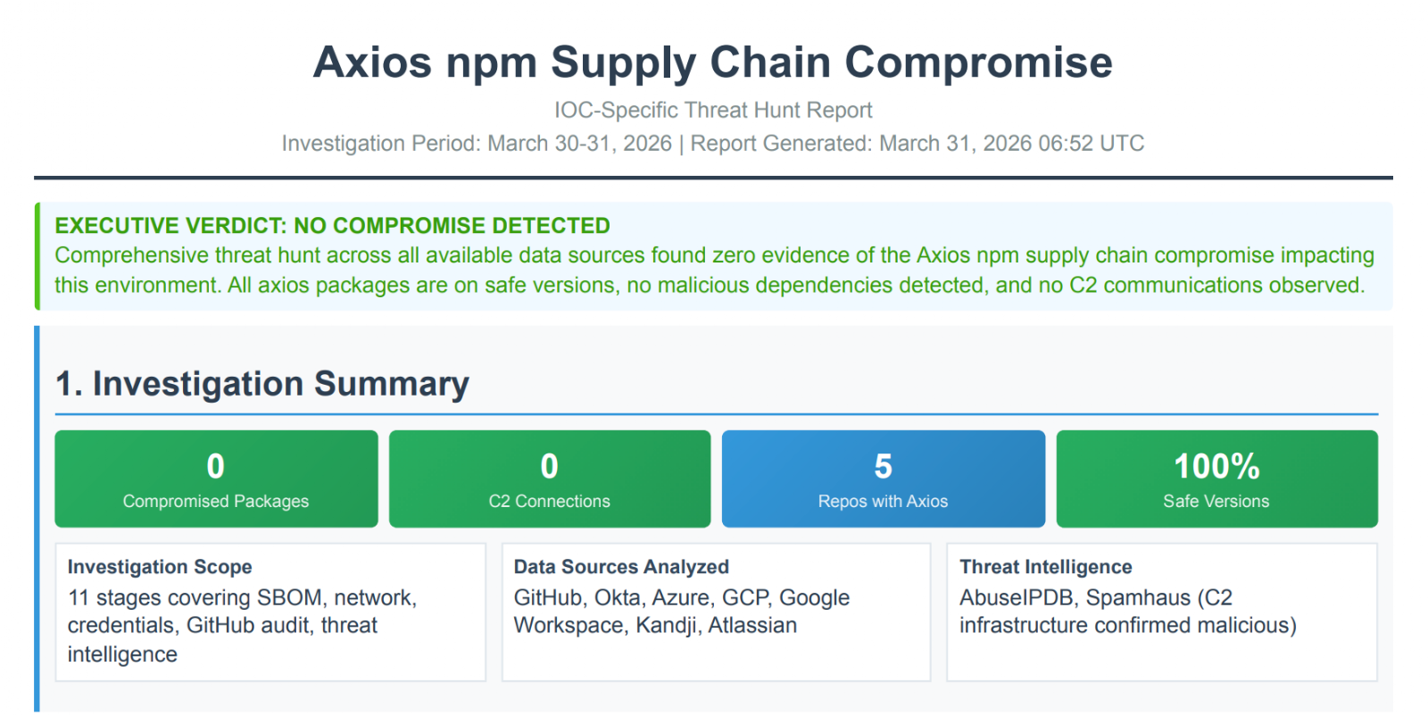Zero-Downtime Intelligence: As shown in the Axios case study, what used to take hours of manual research and IOC matching now happens in minutes.