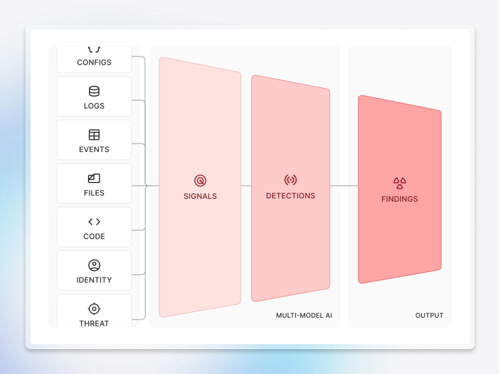 A tiered detection pipeline ingests and correlates low-fidelity signals across users, assets, and apps, then enriches and filters them into a small set of high-confidence alerts your SOC can act on. AI continuously analyzes billions of events, removing noise and benign activity so analysts see only what truly represents risk, even as attackers scale with AI.